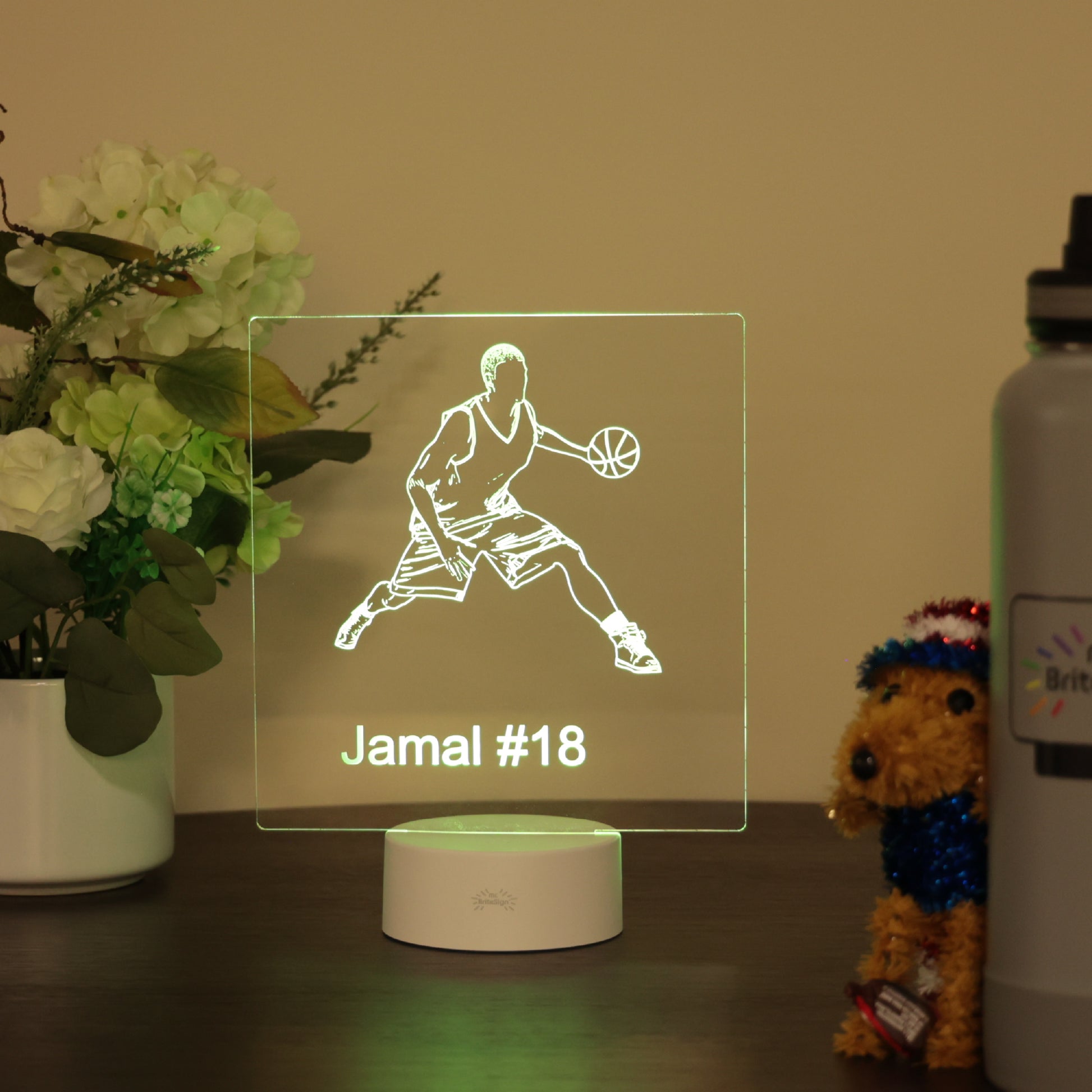 Bring the court to life with this mr.BriteSign featuring a boy dribbling his way toward the net. Perfect for young athletes, team gifts, or any basketball fan who wants to keep their passion shining bright at home or in their room.