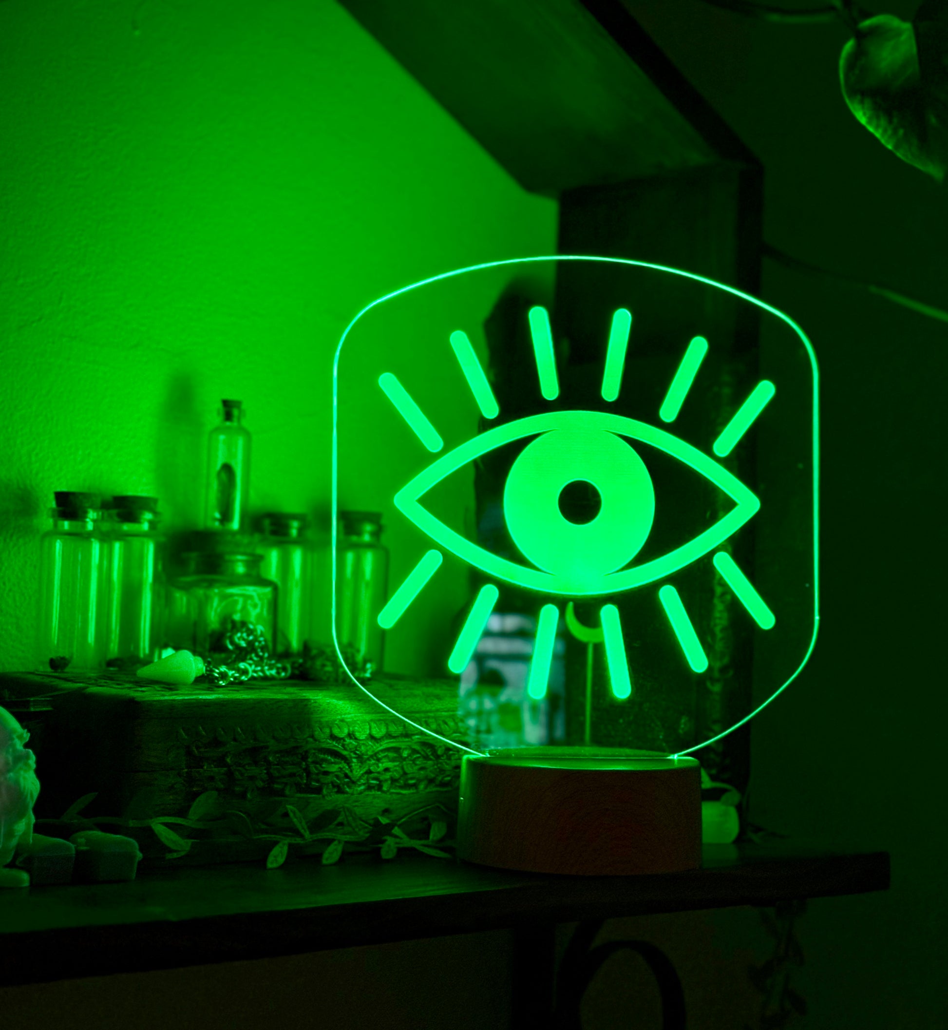 Created to protect your space and elevate your energy, Eye of Intention features a bold, beautifully engraved evil eye design that glows with calm, focus, and quiet strength.