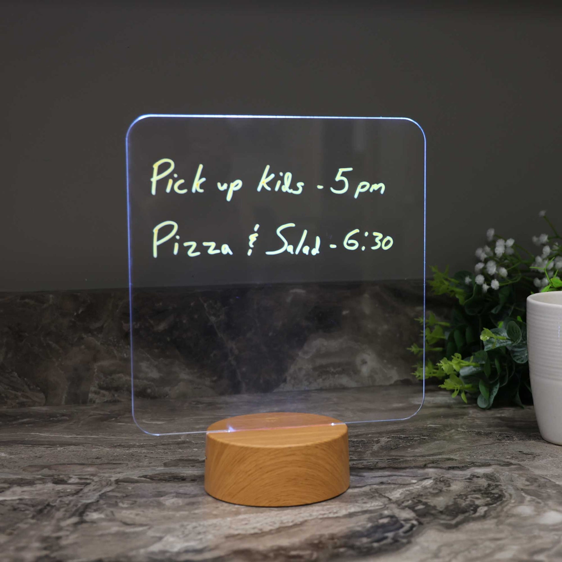 Includes a wet-erase marker for glowing notes, doodles, or reminders. Wipes clean with rubbing alcohol or household cleaner so you can start fresh anytime.