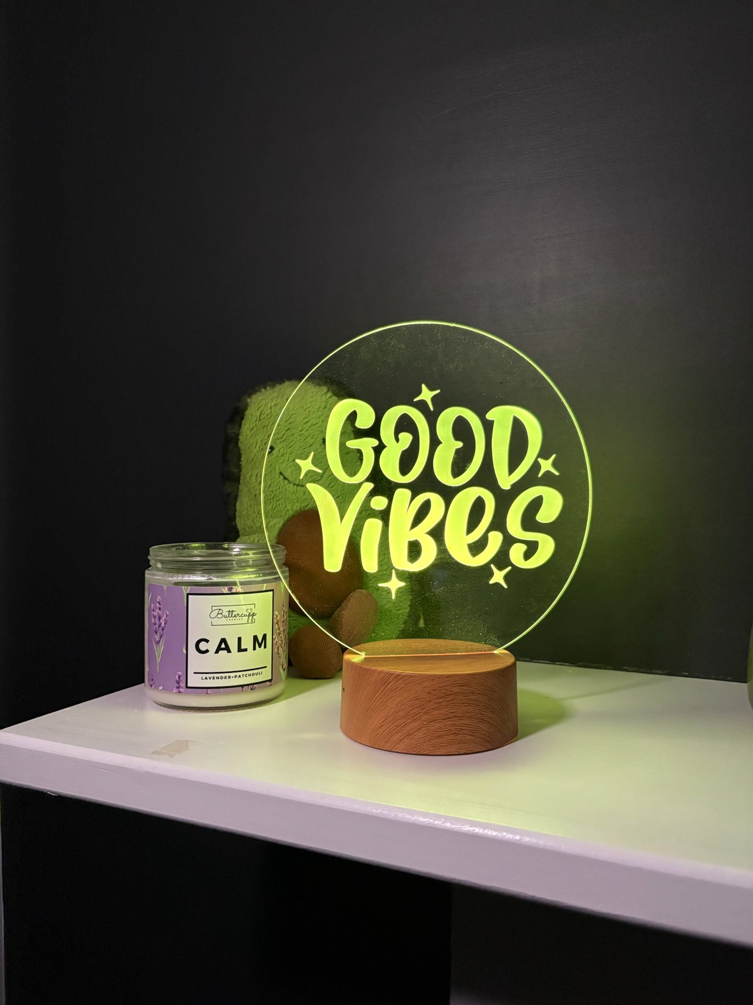 Add a little light, a little color, and a whole lot of good energy to your space. Groovy Good Vibes features a playful, retro-inspired design that’s ready to shine the moment you plug it in.