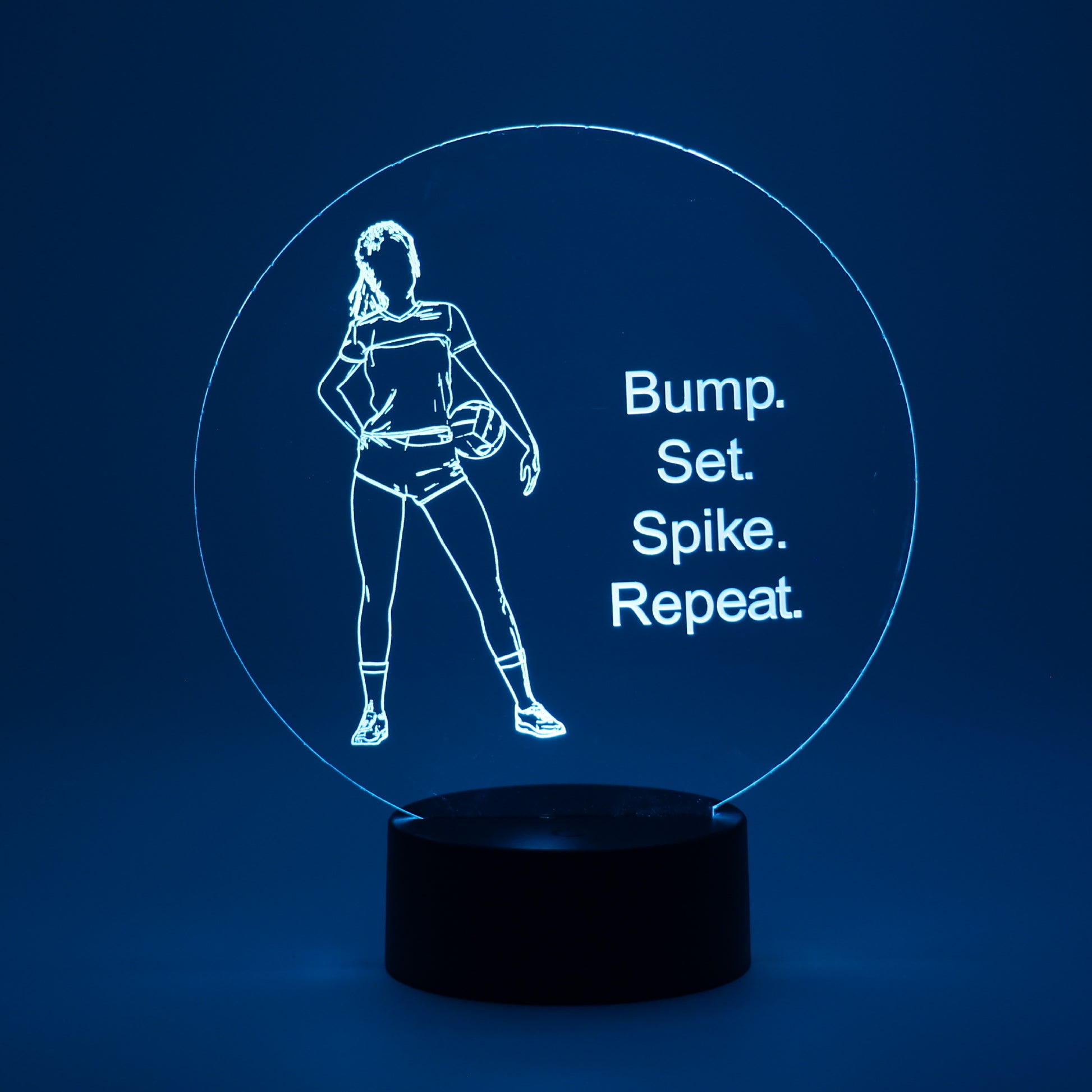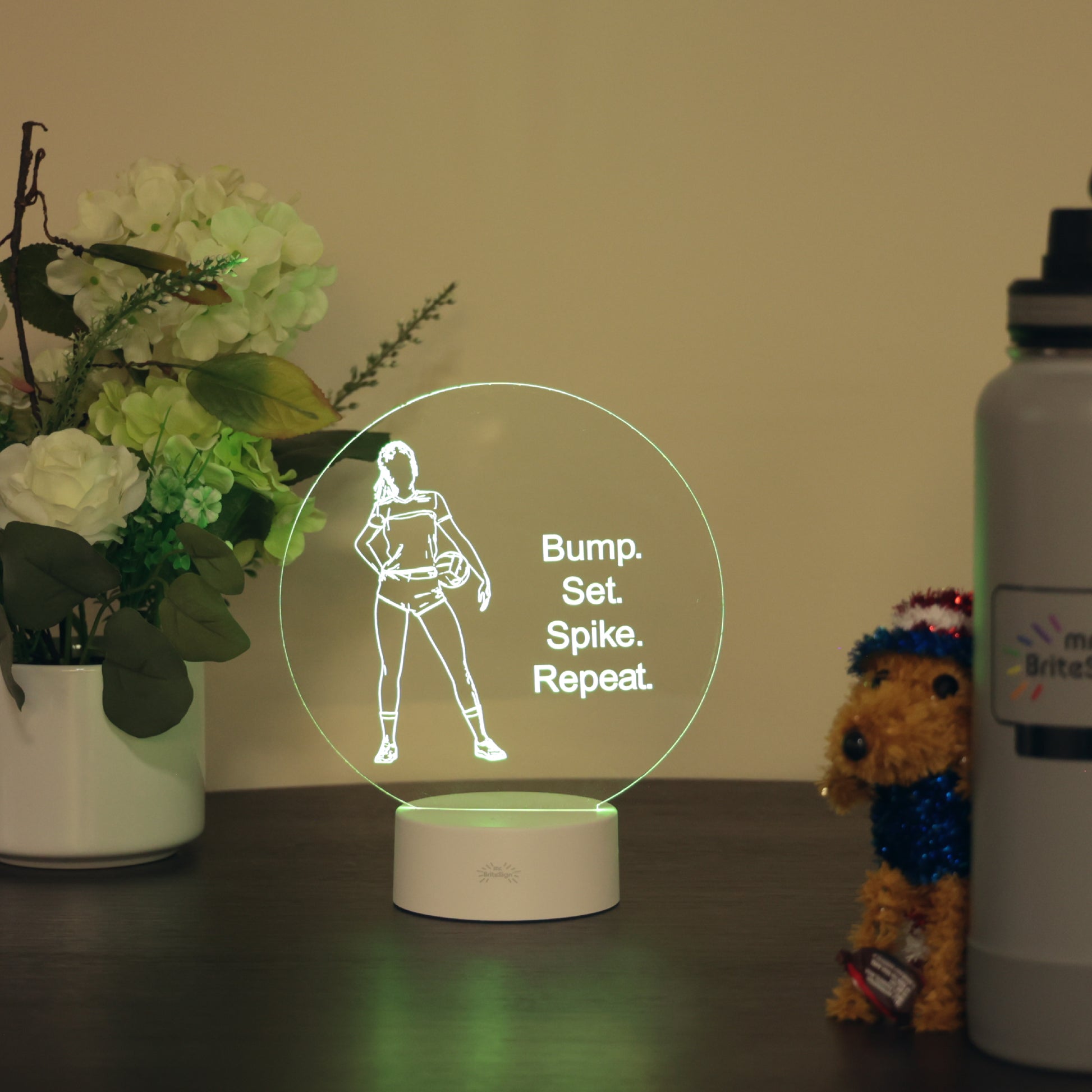 Bring the energy of the court to your space with this volleyball-themed mr.BriteSign. Featuring a confident player holding her volleyball, this sign is perfect for athletes, coaches, and fans who live for the game. Customize it with a name or message to make it uniquely yours and let your volleyball pride shine.