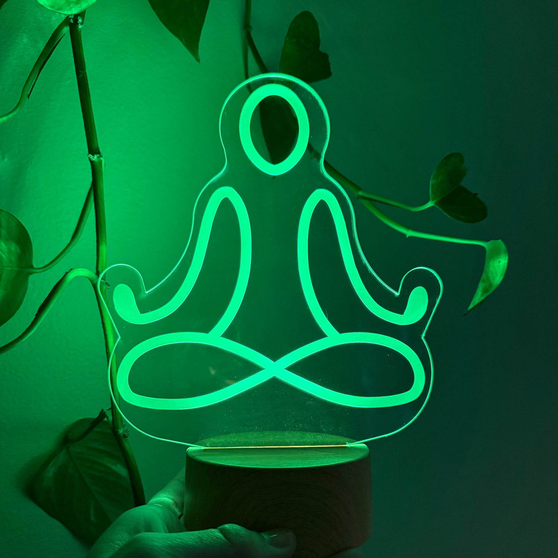 Peaceful presence, powered by light. Namasté features an abstract figure in a meditative pose, etched into clear acrylic and designed to bring calm energy to your space.