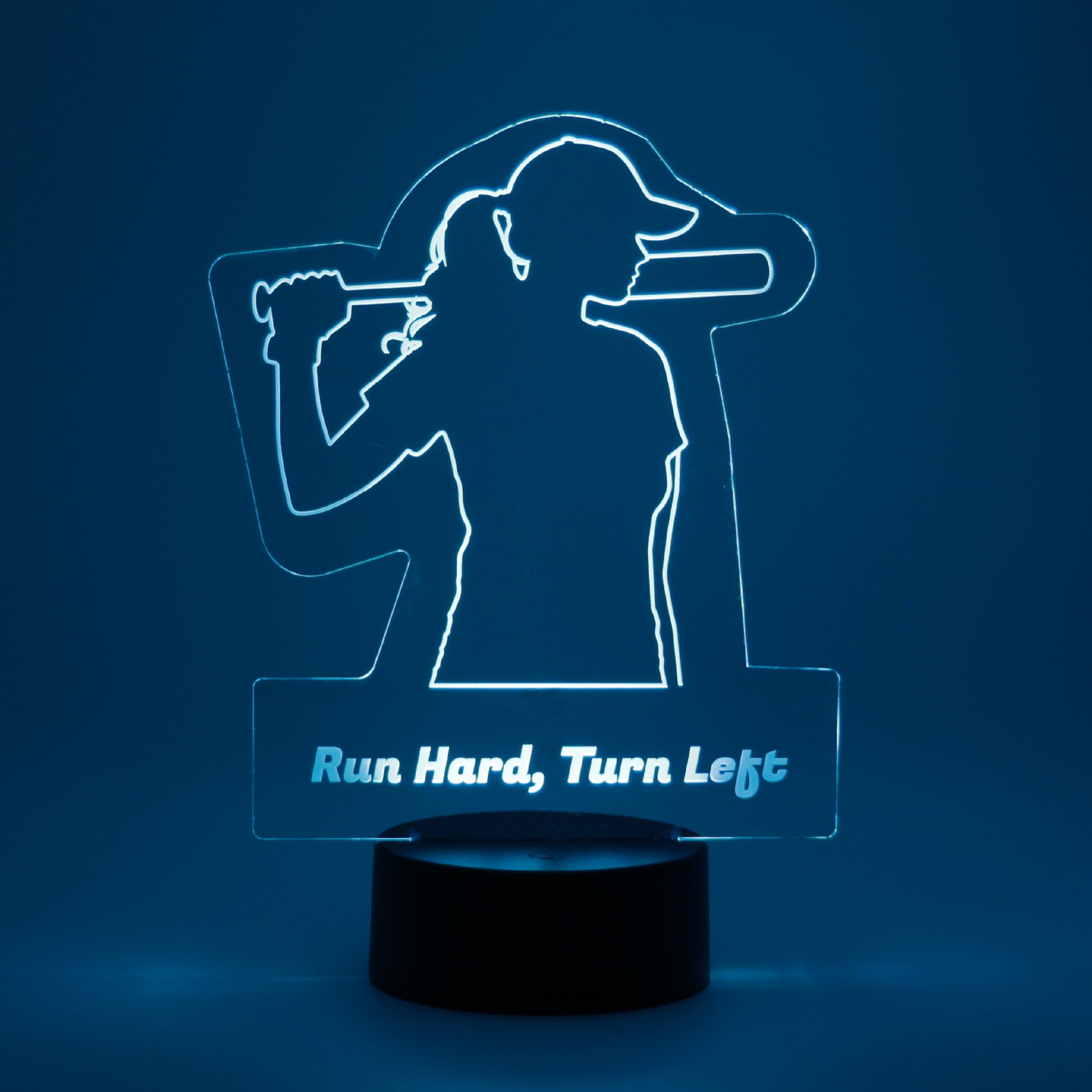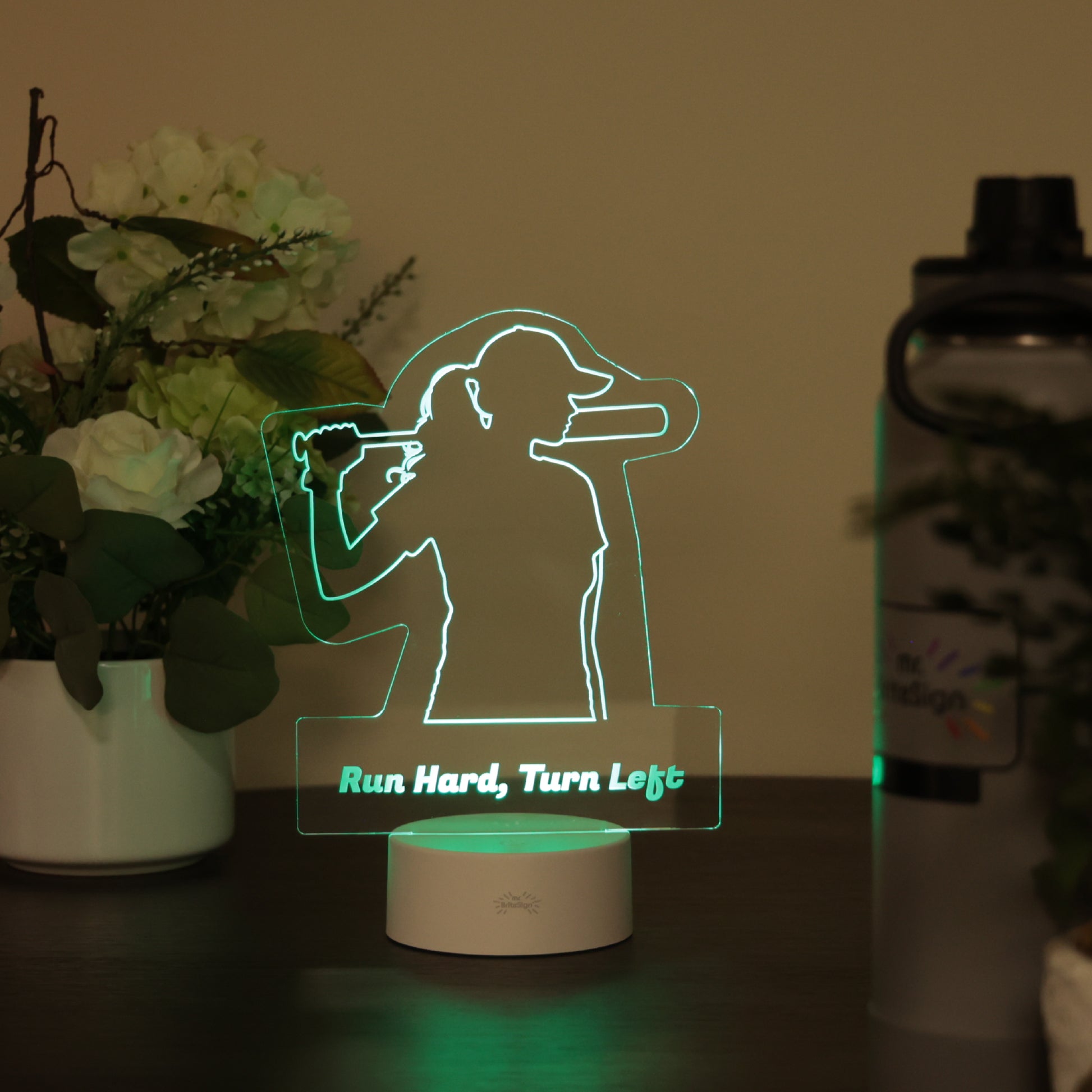 Bring the excitement of the diamond to your space with this softball-themed mr.BriteSign. Featuring an etched batter mid-swing, this glowing sign is a home run for players, fans, and teams alike. Customize it with a name, team, or special message to make it uniquely yours.
